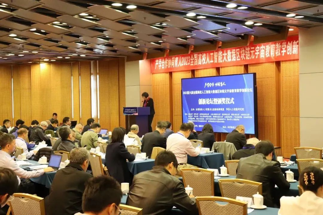 2023年11月4日,由全国高校人工智能与大数据创新联盟、华算人工智能研究院主办,中科院软件所指导,云南大学、东华大学、北京信息科技大学、上海工程技术大学、安徽工程大学、山西农业大学、汕头大学、中北大学、重庆邮电大学、宁波大学科学技术学院、深圳职业技术大学、上海杉达学院、广东东软学院、沈阳城市学院、晋中信息学院、机械工业出版社 北京中关村软件园人才基地培训中心、北京经济技术开发区企业协会、佛山市人工智能学会、国网山西省电力公司信息通信分公司等全国20多家高校和机构协办的“产学合作、协同育人2023第六届全国高校人工智能大数据区块链元宇宙教育教学创新论坛”在北京隆重召开。本届论坛是贯彻落实习近平总书记关于我国教育、科技、人才三位一体发展重要论述的具体实践,是落实教育部 “产学合作、协同育人”战略的具体行动,是推动教育部“高等学校人工智能创新行动计划”、“高等学校区块链技术创新行动计划”的系列活动之一。会议由联盟秘书长、华算人工智能研究院执行院长朱启明主持。