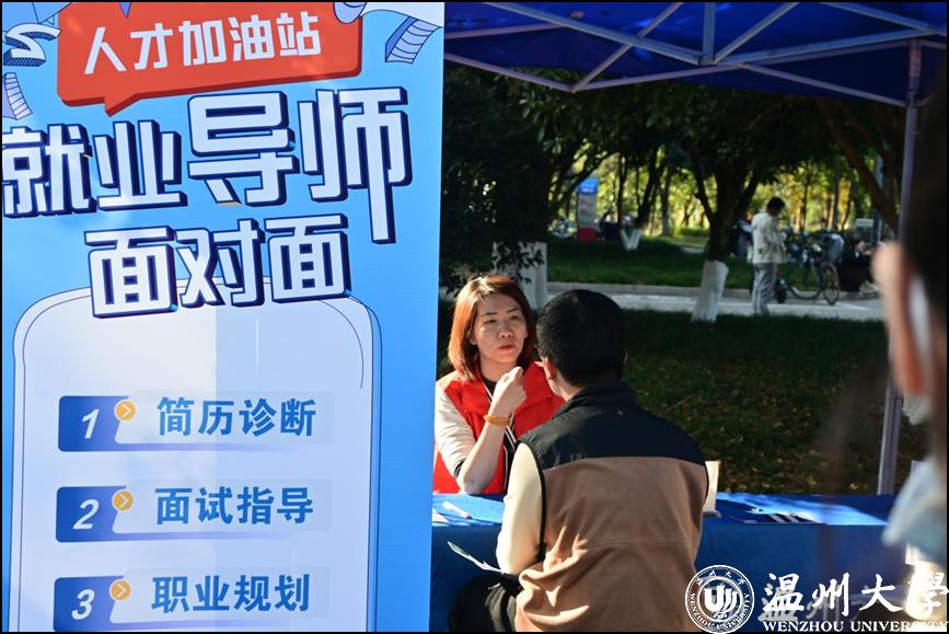 招聘会现场,除企业招聘展位外,还设置了温州市人社局留温政策服务点、消防员招录工作咨询点、大学生“西部计划”项目咨询点、大学生“征兵入伍”咨询点、大学生职业生涯规划和简历指导服务点等展位,一站式为学生提供就业咨询指导服务和保障。此外,还专设了二级学院校企洽谈区,将校企沟通交流从办公室搬到招聘会现场,鼓励各学院主动沟通联系、精准对接用人单位,进一步拓宽就业岗位,探索产学研全方位合作。