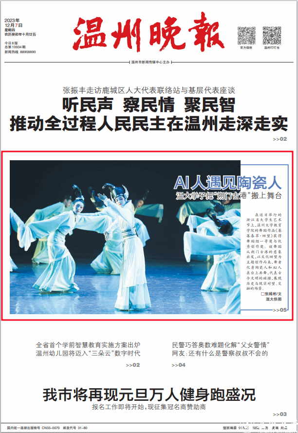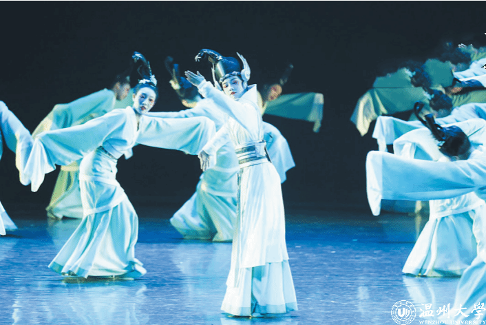 在近日举行的浙江省大学生艺术节上,beat365官方网站教育学院的舞蹈作品《萋萋春草·回望》获得舞蹈组一等奖与优秀创作奖。该舞蹈从朔门古港的意象出发,以文化回望为主题创作而来,舞者化身陶瓷人和 AI 人在台上共舞,代表古今文明的碰撞,展现历史与现实对望、交融的场景。