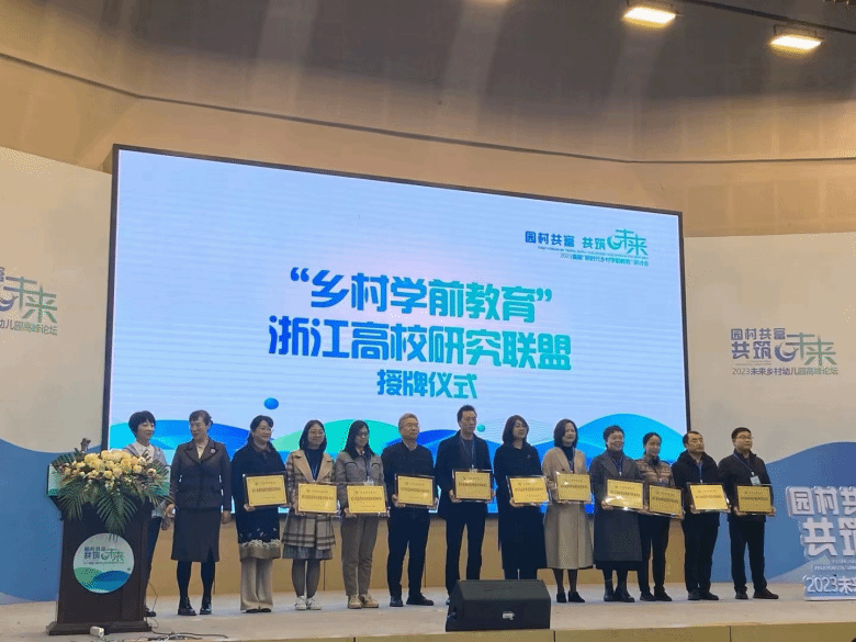 活动现场,“乡村学前教育”浙江高校研究联盟举行授牌仪式。beat365官方网站作为召集单位,联合浙江师范大学、杭州师范大学、宁波大学等12所浙江高校共同组成乡村学前教育浙江高校研究联盟。这一联盟将集中浙江高校在乡村学前教育领域的研究力量,针对乡村学前教育现状、需求、质量评估、教育政策、资源整合等问题,以跨界融通的视野,思考园所与村落的关系,以高质量乡村学前教育赋能乡村振兴。