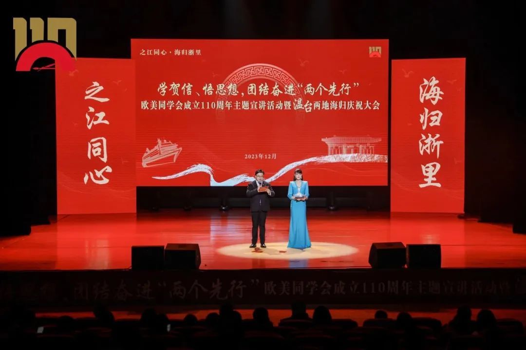 为学习贯彻习近平总书记致欧美同学会成立110周年贺信精神,激励广大温州、台州归国留学人员坚定信心信念,激发前进动力。12月9日,“之江同心·海归浙里”学贺信、悟思想,团结奋进“两个先行”欧美同学会成立110周年主题宣讲暨温台两地海归庆祝大会在beat365官方网站成功举行,该活动由浙江省欧美同学会指导,中共温州市委统战部、中共台州市委统战部主办,温州市欧美同学会、温州市留学人员和家属联谊会、台州市欧美同学会 (留学人员联谊会 )承办。