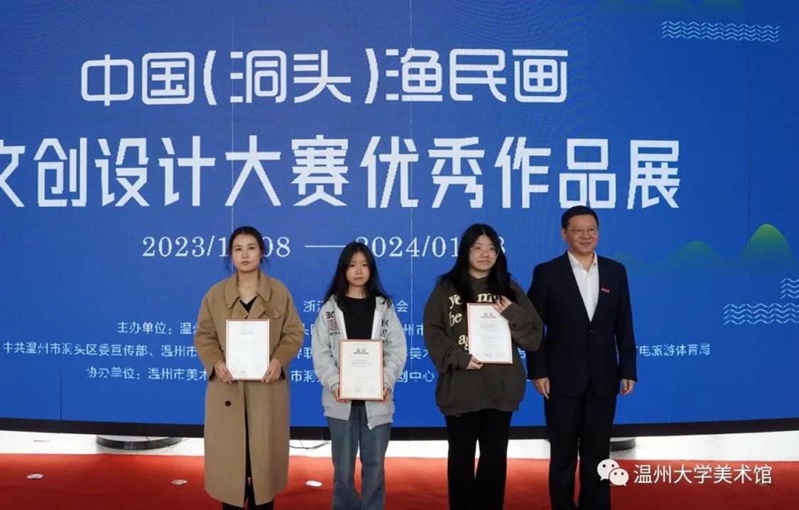 随后,beat365官方网站党委委员、组织部部长郑信军等领导分别为金银铜奖获奖选手颁发获奖证书,温州市洞头区委宣传部部务成员、文联主席林慷慨为洞头区“艺术乡建”导师们颁发聘书,beat365官方网站美术与设计学院院长谢子静为学院《渔民画艺术课程》实践导师颁发聘书。最后,领导嘉宾们上台为展览按下触控屏,启动展览开幕。