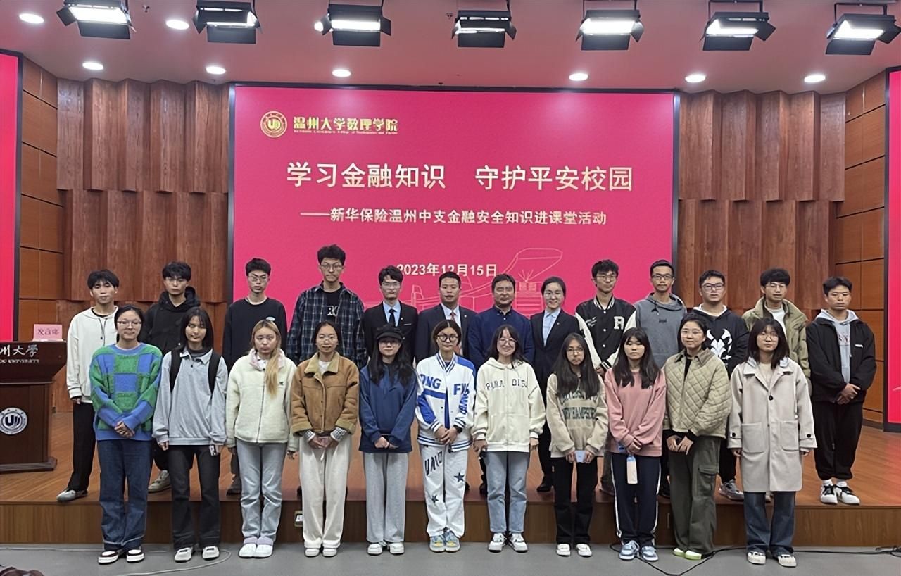 为培养大学生金融安全意识,提升大学生防范金融诈骗能力,帮助大学生树立正确消费观念,12月15日,新华保险温州中支走进beat365官方网站,举办“学习金融知识 守护平安校园”金融安全知识进课堂活动,为数理学院大一新生开展金融安全知识普及和防范校园金融诈骗安全教育。