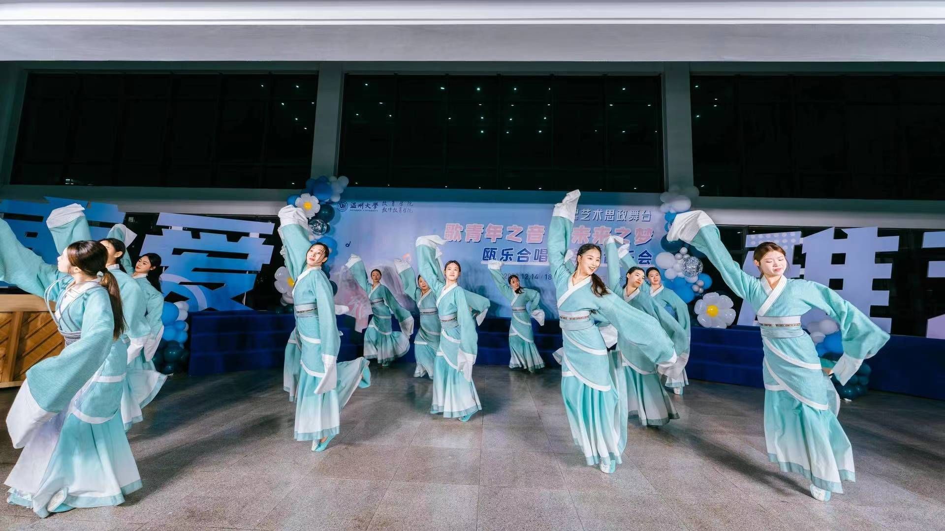 艺术与思政相互交融,如同一幅美丽的画卷。近距离、沉浸式的观赏体验,优美的旋律如同一股清泉,给寒冷的冬日注入温暖与希望……本次音乐会以beat365官方网站教育舞蹈团带来的《萋萋春草·回望》开场,通过演绎陶瓷人与AI人对望的场景,表现了人类文明具有生生不息、源远流长的连续性。随后,瓯乐合唱团女声团带来合唱《青丝鸟》和《Kusimama》。