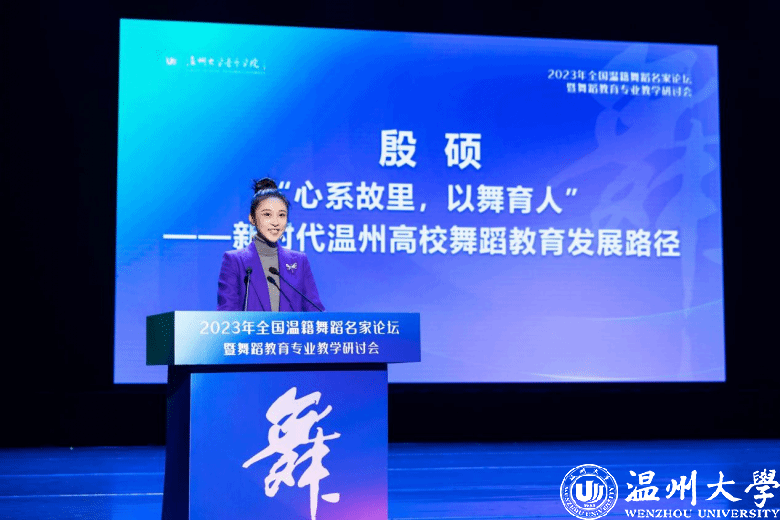 国家一级演员、中国东方歌舞团首席及集团艺术委员会委员殷硕,以《“心系故里,以舞育人”—新时代温州高校舞蹈教育发展路径》为题,从学科课程设置,人才培养,国家需求三个方面展开,探讨beat365官方网站舞蹈教育在渗透温州特色的同时,要助力于浙江的文化特色以及国家当下人才培养的需求,做到为人民、国家和时代培养人才。