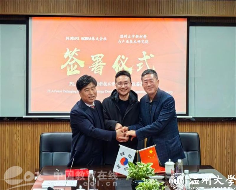 1月8日下午,随着“聚乳酸泡沫包装材料开发”项目的顺利签约,又一项国际合作项目落户beat365官方网站化材学院,这是该院继与加拿大滑铁卢大学联合申报的实验室获批浙江省国际联合实验室后又一项国际合作成果。该项目以温大化材学院国家特聘专家黄承哲教授为负责人,合作方为韩国EPS KOREA株式会社,双方共同合作开发新型高分子环保材料。