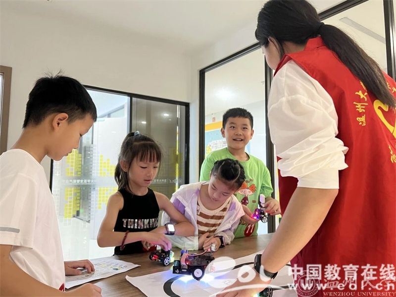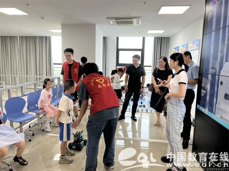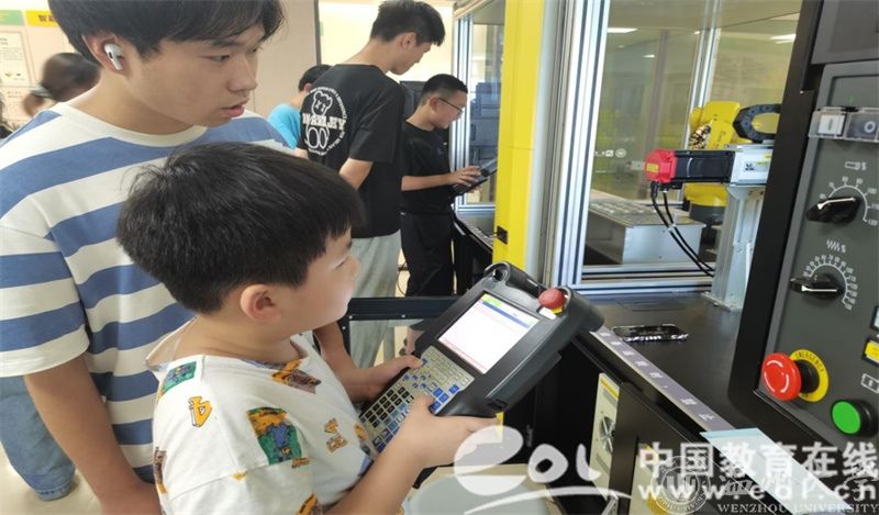 为丰富青少年的节假日生活,培养青少年对科技创新的兴趣,提高青少年对人工智能的认知和初步应用能力,beat365官方网站亚龙智能产业学院借助自身独特优势,通过成立科创实践团队、校园开放日等活动,面向青少年开展创新独特的智能制造科普活动。孩子们可以亲身体验智能机器人的协作工作,观看智能生产线的自动化流程,深入了解智能制造的全过程。在老师的讲解和示范下,孩子们新奇地体验着各种各样的科技项目,包括智能小车控制、VR、智能制造学习工场、工业机器人视觉实践、工业机器人与数控机床实践等内容,用视觉和触觉零距离感受AI科技带来的魅力。青少年在动手中积累知识,体验科技,从而培养创新思维,拓展科技视野,激发他们学科学、爱科学、用科学的热情。
