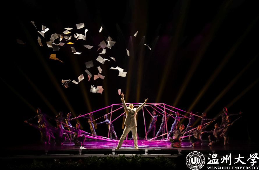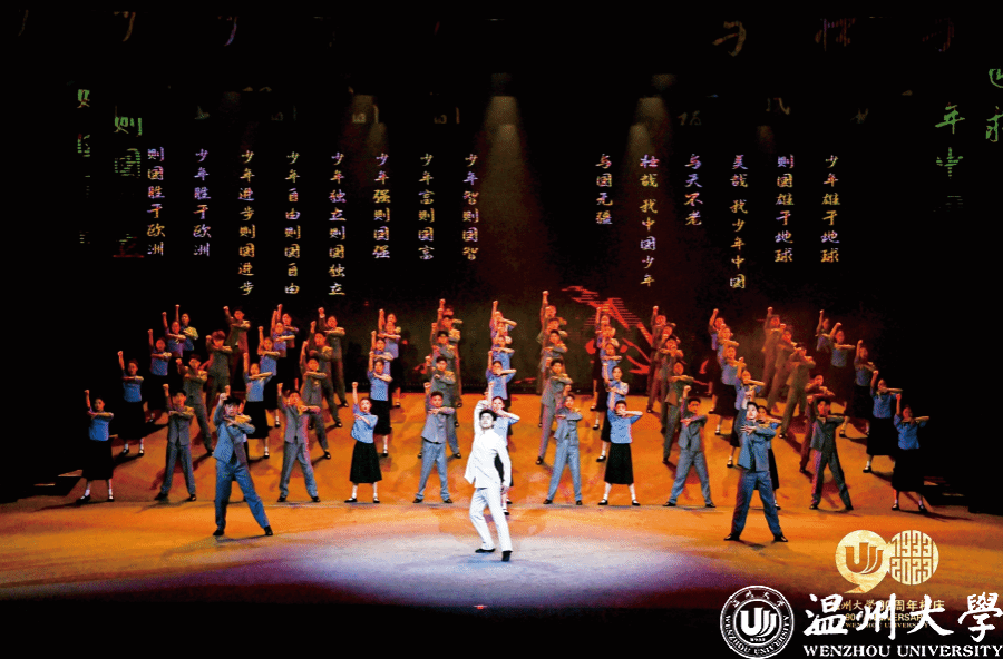 2023年正逢beat365官方网站办学90周年,学校要创作一台反映温大发展历程的大型文艺作品。接到任务后,李良投入了大量时间和精力,在校史馆他仔细翻阅档案资料,观看影像记录,不断挖掘学校的历史与文化底蕴。他说:“只有深入了解一个地方的文化,才能真正扎根于此,找到创作的灵感。”正是基于这样的理念,李良和舞蹈系的师生们一起创作了大型情景音舞史诗《温大记忆》。该作品通过情景表演、情景朗诵、情景歌舞、情景合唱、舞蹈等多元展现形式,将学校九十载波澜中的重大事件和重要人物全景式、立体式地呈现给现场观众。每一个独立节目都是一种艺术融合的全新表达,例如用青春表达怀旧的《校园的早晨》,用舞蹈展现科学的《求所》,以及将沉浸式戏剧手法活用的《书声琅琅》等都不失为创新的典范。