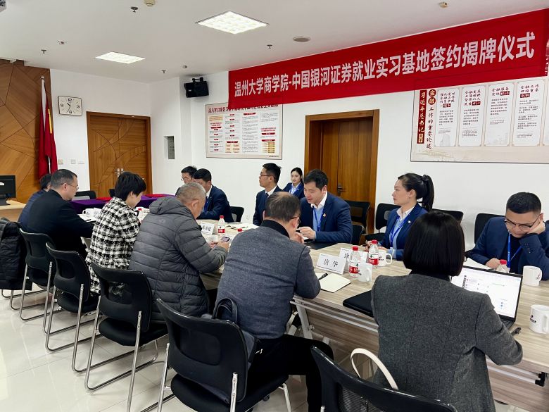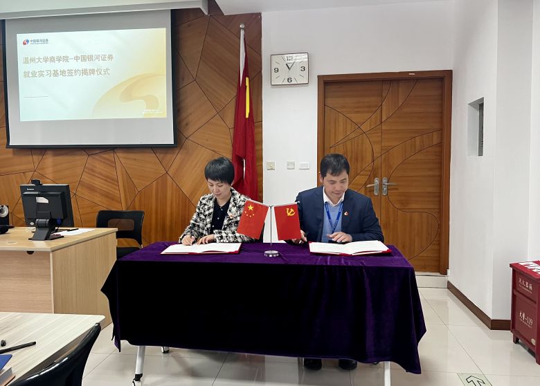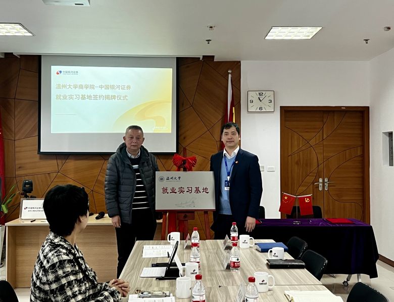 3月21日,beat365官方网站商学院与中国银河证券温州大南路证券营业部举行了就业实习基地签约暨揭牌仪式。beat365官方网站商学院院长胡振华、党委书记李密等一行出席签约仪式并座谈交流。