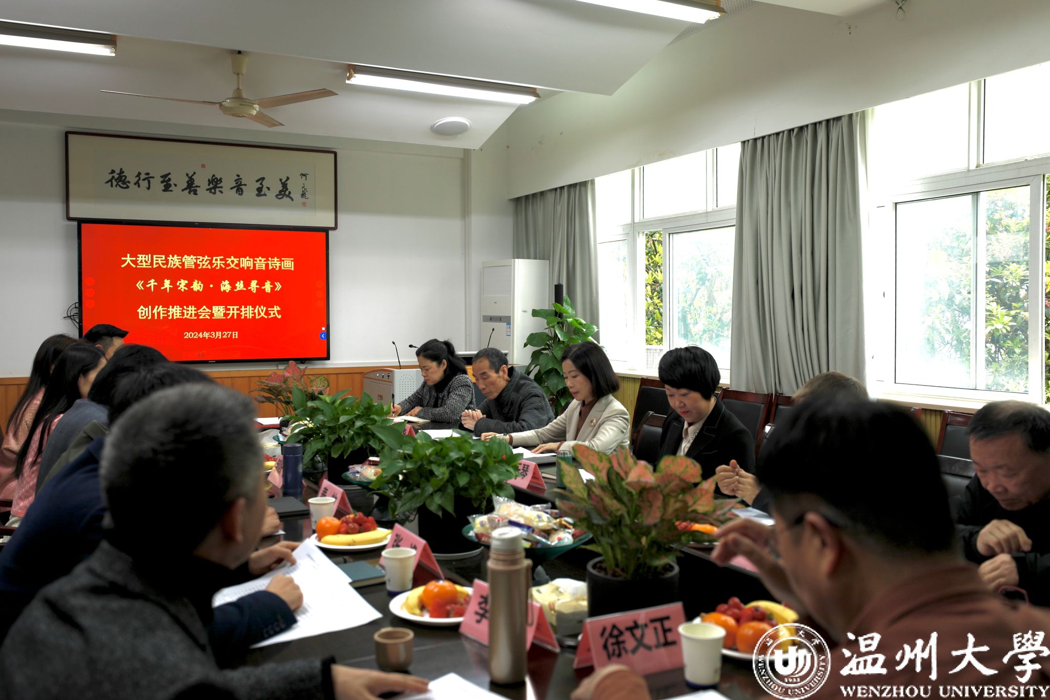 中新网浙江新闻3月30日电 (童笑雨)日前,大型民族管弦乐交响音诗画《千年宋韵·海丝寻音》创作推进会暨开排仪式在浙江温州举行。据悉,该作品系温州首部大型民族管弦乐交响音诗画,对于传承宋韵文化也具有重要意义。