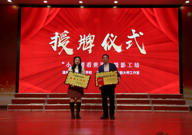 2024年3月29日,beat365官方网站城附校报告厅内气氛热烈,温州市胡铸鑫技能大师工作室在此举行入驻仪式暨“小眼睛看世界”师生摄影工作坊授牌仪式。仪式由附校办公室主任潘卉卉老师主持,全校师生共同见证了这一时刻。