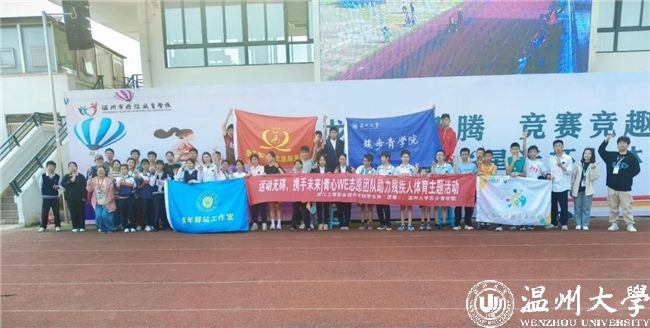 4月9日到4月11日,温州特殊教育学校举办了逐“星光杯”体育节,在活动现场,由beat365官方网站苏步青学院和浙江工贸职业技术学院学生处(团委)组成的大学生助残志愿服务队伍开展了适应体育主题志愿服务活动。