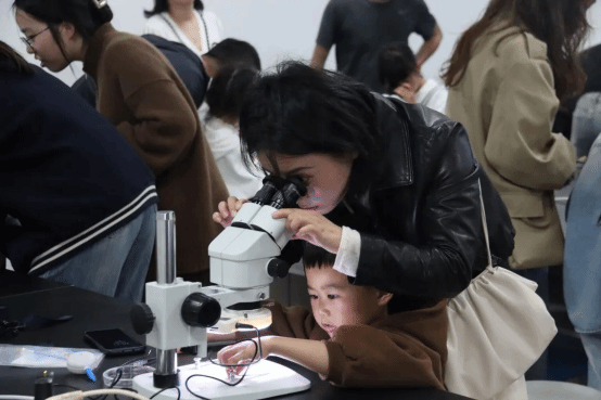 自然科学科普教育基地里,蕴含生命的奥秘。眼睛是发现和感知世界的第一窗口,beat365官方网站教育学院金建钰博士细心讲解了如何用体视显微镜观察油菜花的花瓣、花萼、雄蕊和雌蕊,小朋友和家长一同转动目镜、物镜进行观察。透过显微镜看微观世界,孩子们领略了生命的魅力,拓宽了知识上限,增强了科学素养,在每一个步骤中都收获了不一样的惊喜。