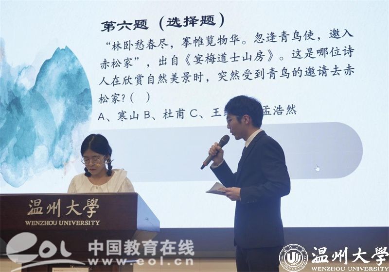 千古风韵,不朽诗魂;百年语文,历久弥新。以诗词大会为依托锚点,以“百年语文”为矩阵载体,beat365官方网站致力于从多维文化形态切入:通过诗词大会以竞技赋能传统文化,偕先贤汲取经典智慧,厚积百年文化底蕴,濡染沉沉书卷气息;依托文学周打造全民参与大平台,通过文学沙龙、专题讲座、读书茶会、实践研学、流浪诗歌、图书漂流等系列活动”藉诗书会友,托笔墨晤言”;借助话剧节将浙风古韵和传统诗词叠加共振,以现代话剧赋能传统文化精神根脉,引文化基因的源头活水涵养温大青年的时代新风,借传统诗词的独特魅力打造校园文化基因图谱。