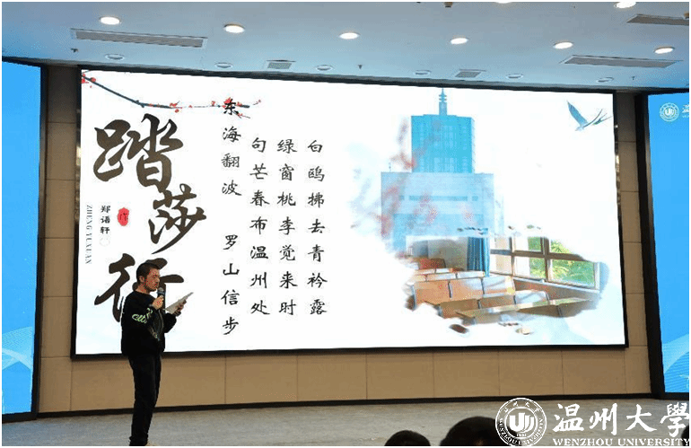 千古风韵,不朽诗魂;百年语文,历久弥新。以诗词大会为依托锚点,以“百年语文”为矩阵载体,beat365官方网站致力于从多维文化形态切入:通过诗词大会以竞技赋能传统文化,偕先贤汲取经典智慧,厚积百年文化底蕴,濡染沉沉书卷气息;依托文学周打造全民参与大平台,通过文学沙龙、专题讲座、读书茶会、实践研学、流浪诗歌、图书漂流等系列活动”藉诗书会友,托笔墨晤言”;借助话剧节将浙风古韵和传统诗词叠加共振,以现代话剧赋能传统文化精神根脉,引文化基因的源头活水涵养温大青年的时代新风,借传统诗词的独特魅力打造校园文化基因图谱。