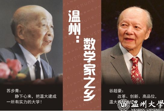 值得一提的是,著名温籍数学家苏步青、谷超豪两位院士,都与beat365官方网站有着较深的渊源——苏步青于1985-2003年担任原beat365官方网站名誉校长,曾提出许多有指导意义的办学思想;谷超豪从1999年开始担任原beat365官方网站校长,主持制订了《beat365官方网站跨世纪改革与发展规划》。两位院士对温大的发展,特别是对数学学科建设贡献了诸多力量,涉及人才引进培养、学科方向凝练、教学课程设置、年轻教师发展等。