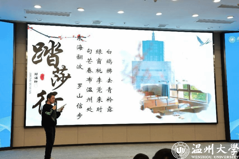 原创诗词环节,选手们神采飞扬,一一登台展示自己的作品,有格律对仗整齐的古体诗,也有自由奔放的现代诗。选手们或抒情婉转解说,或慷慨激昂诵读,展现了温大学子的青春活力。