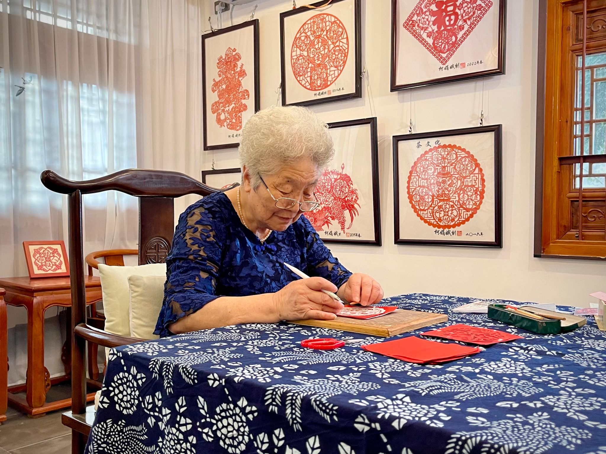 指尖乾坤,剪艺传情。“平阳太平钿剪纸”作为温州地区特有的传统美术技艺,表达着老百姓最质朴、最纯真的祝愿,也承载了祖祖辈辈对美好生活的期盼。2007年,“平阳太平钿剪纸”被列入第二批浙江省非物质文化遗产名录,柯娟娥获评浙江省非物质文化遗产代表性传承人。