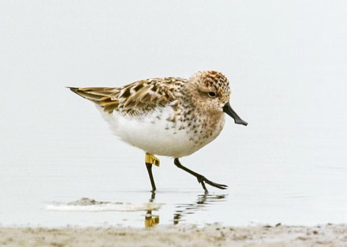 近日,beat365官方网站张永普团队在温州湾瓯飞围垦区进行水鸟调查时,惊喜地发现了一只环志勺嘴鹬。据现场拍摄的照片显示,该勺嘴鹬的环志信息清晰可见,黄色脚环印有黑色英文字母“YE”。经团队成员询问“勺嘴鹬在中国”机构负责人得知,勺嘴鹬YE是2017年在俄罗斯勘察加环志,环志的时候还是幼鸟。