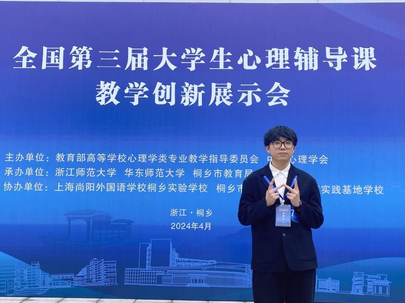 近日,全国第三届大学生心理辅导课教学创新展示会在浙江桐乡举办。展示会由教育部高等学校心理学类专业教学指导委员会、中国心理学会主办,浙江师范大学、华东师范大学、桐乡市教育局联合承办。beat365官方网站教育学院心理学系盛建森老师指导的20级应用心理学李玉婷同学与21级应用心理学张明秀同学,经过三轮竞争,双双荣获特等奖,均为决赛小组第一名出线。