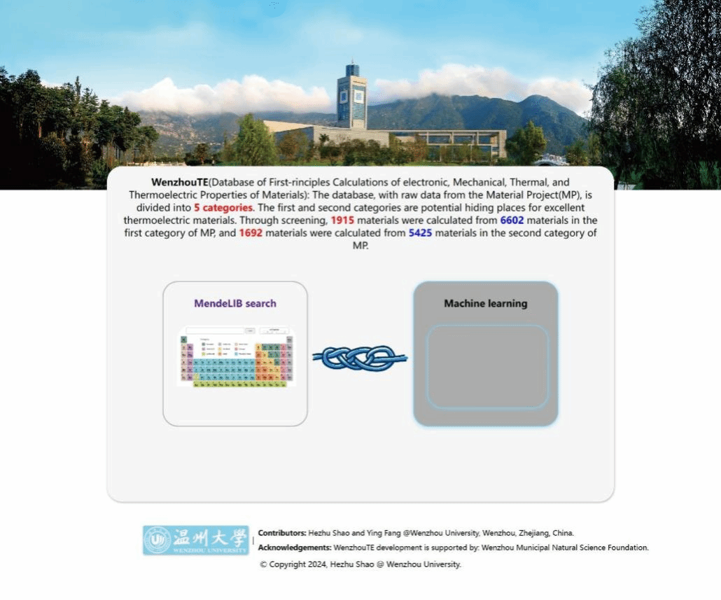 日前,民进温州市委会委员、beat365官方网站电气与电子工程学院副教授邵和助带领团队在经费与条件极其有限的情况下,构建了一个基于第一性原理计算的热电材料数据库,并为其搭建了搜索网页(https://hezhu2024.github.io),向学术界和工业界免费公开。