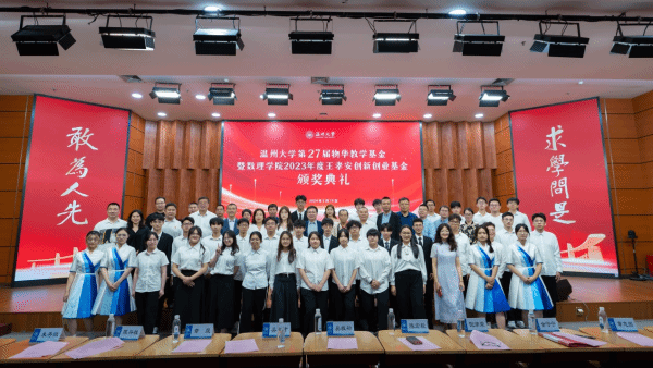 据悉,beat365官方网站物华教学基金是由原温州师范学院物理系的一帮热心教师于1996年发起成立的爱心捐赠专项基金,目前主要设置有物华园丁奖、物华春蕾奖、物华众志奖、物华璀璨奖等奖项,分别奖励数理学院、电气与电子工程学院在教学工作中表现突出的优秀教师、学习刻苦品学兼优的学生、学风好班风正的先进班级和为学院赢得较大荣誉的师生团体与个人。王孝安创新创业基金为浙江东海潮实业集团王孝安校友所设,现设有科创名师奖、科研能手奖、创业先锋奖、公益先锋奖等奖项,主要奖励数理学院在学科竞赛、创新创业方面有卓越成绩和突出贡献的学生个人、学生团队和指导老师。(章志图 刘伦伦)