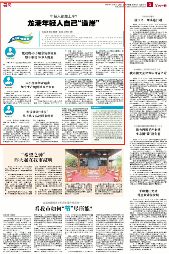 龙港撤镇设市以来,龙港市净增长社保扩面近3万人,年增速居全省前列,新增缴纳社保人口主力是90后年轻人,为体现这种年轻氛围,即日起,温州日报推出《兴龙港•年轻态》专栏,展示有拼劲、有志向的人们,如何在龙港开创有质感的人生,这些独具龙港特色的“人间烟火气”,也赋予着“龙港精神”新的时代内涵。
