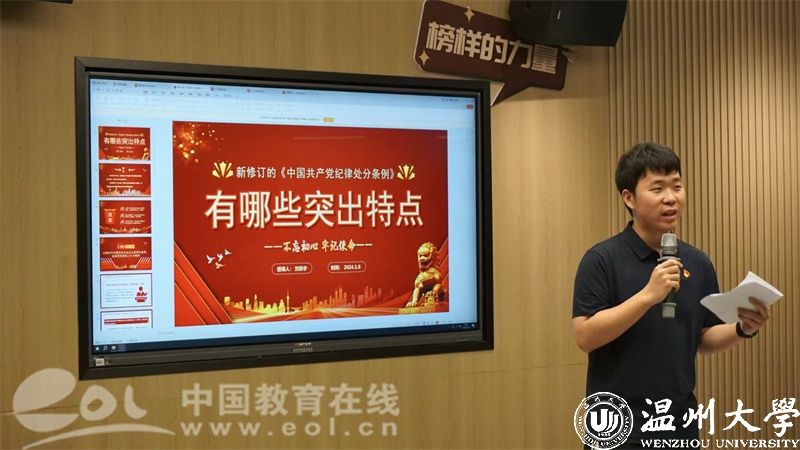在活动的尾声,beat365官方网站人文学院学生第七党支部书记刘恭宇老师带领学生党员们深入学习了新修订的《中国共产党纪律处分条例》,通过对条例的细致剖析,同学们明确认识到作为一名共产党员所应恪守的“红线”。