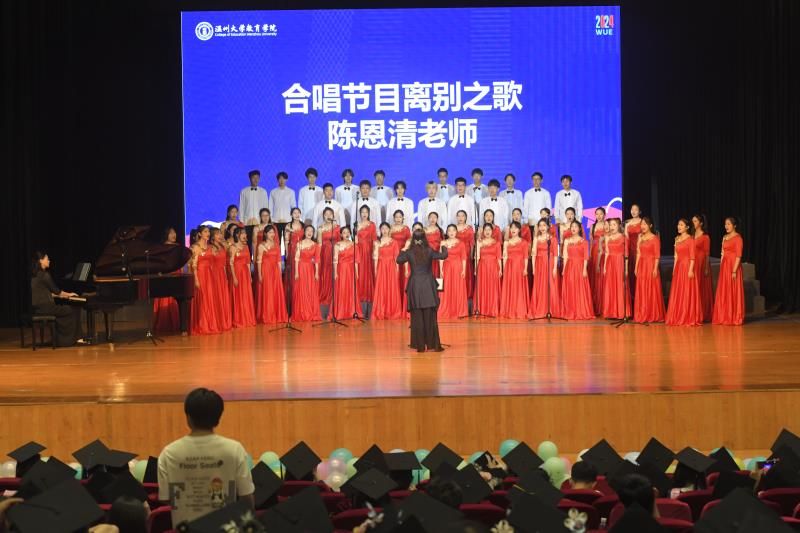 现场,毕业生代表用鲜花致敬辛勤付出的教师,瓯乐合唱团以《离别之歌》演绎回忆与未来;全体师生共同唱响《beat365官方网站校歌》,祝愿扬帆再起航。
