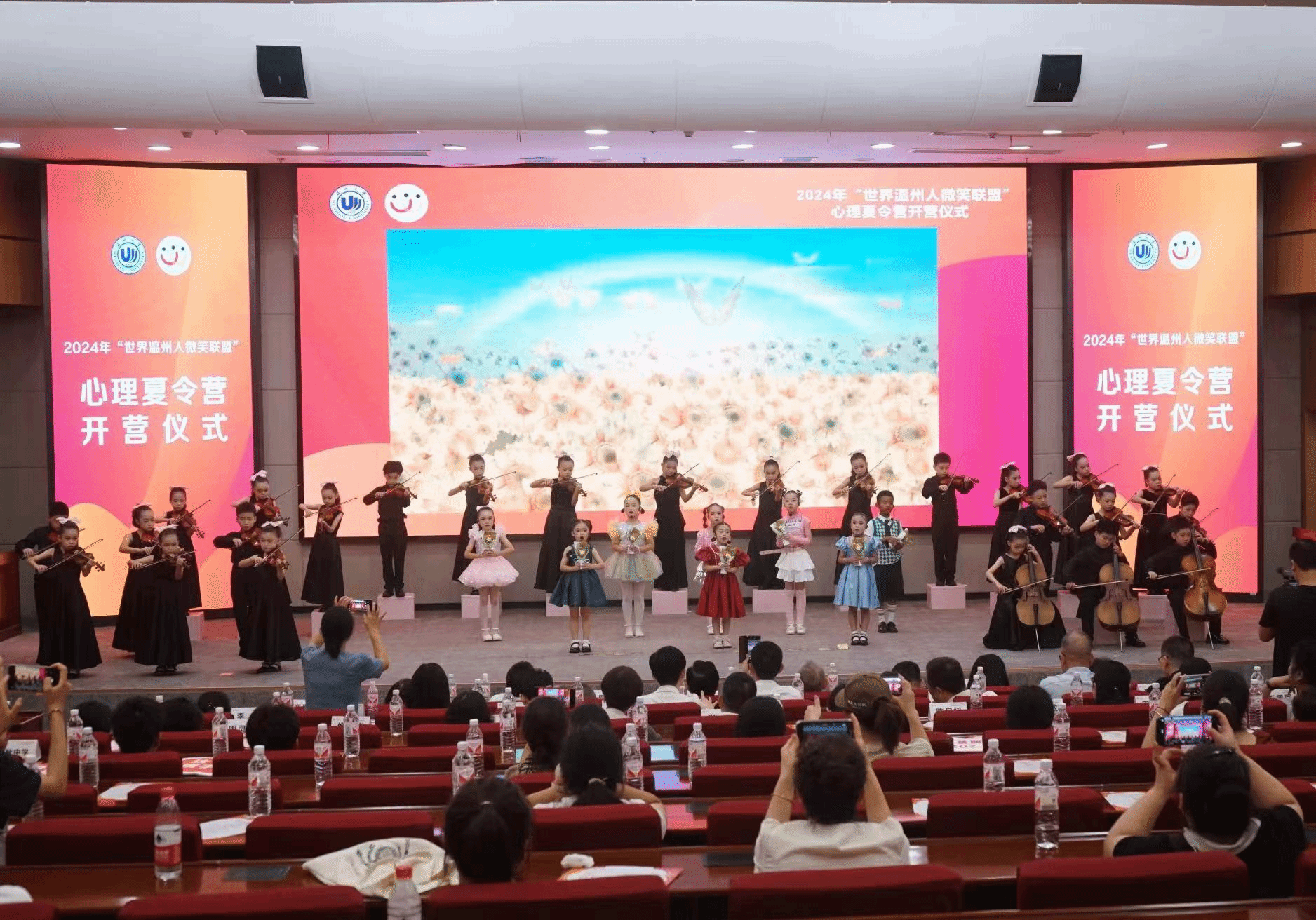 活动现场,往期营员代表通过《微笑联盟感恩十五周年》短片表达了心怀感激的参训心情,传递了对“微笑联盟”新营员的祝福。来自温州市蒲州育英学校、温州市育英学校的孩子们通过《永远的微笑》和《听我说谢谢你》两个节目唱出营员们对美好生活和自信笑容的期盼。