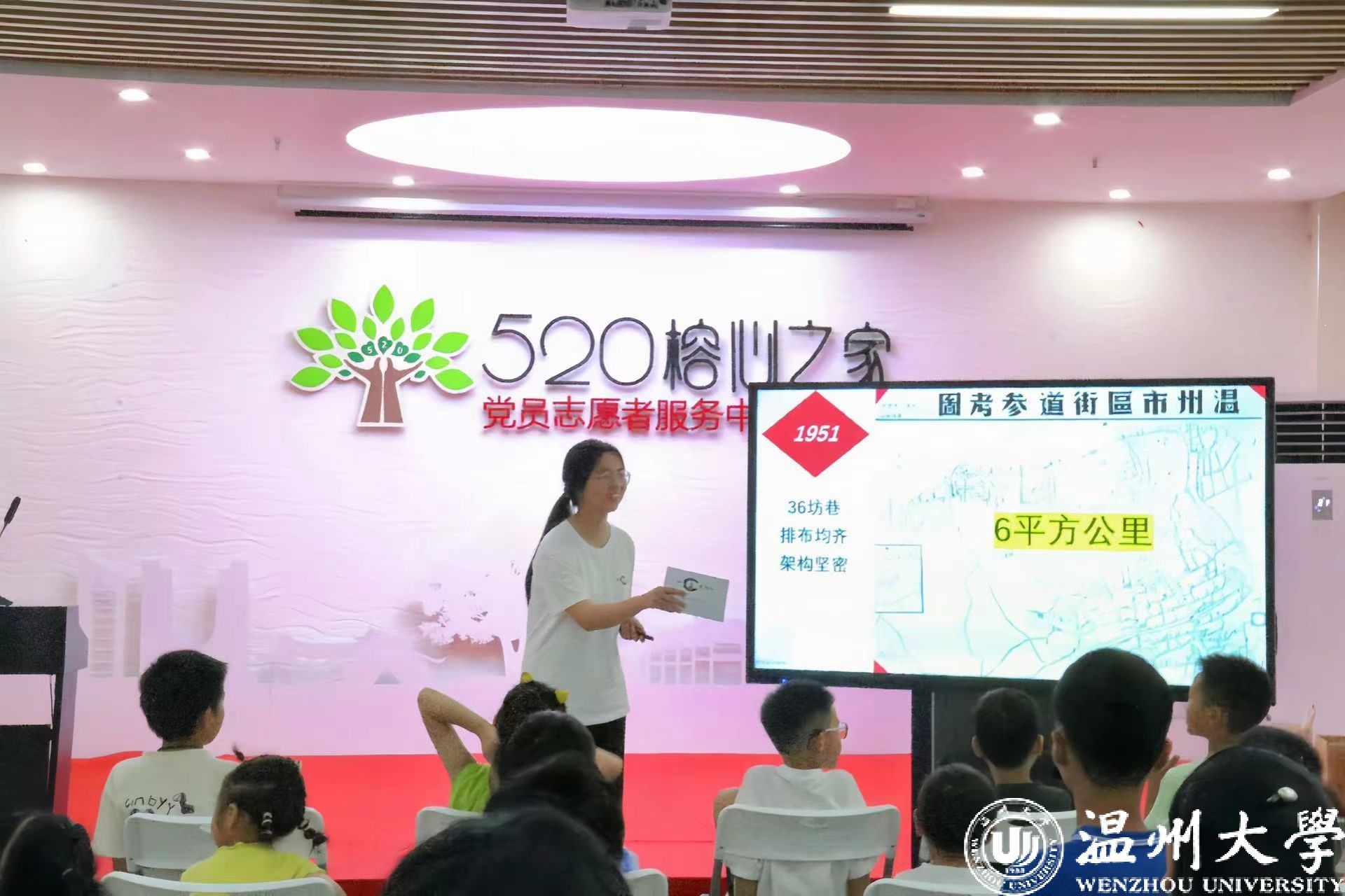 “大家知道这时候温州城区面积是多少吗?只有6平方公里。6平方公里是怎样一个概念呢?我给大家来做个对比,2018年温州建成区的面积是260.6平方公里。也就是说,要把44个1951年的温州拼在一起才能和现在的温州一样大。”一组组数据加以生动的案例,让尤雯槿的宣讲赢得台下社区居民的阵阵掌声。这是前不久beat365官方网站“小马”实践队在新桥街道山前社区开展理论宣讲活动的现场。
