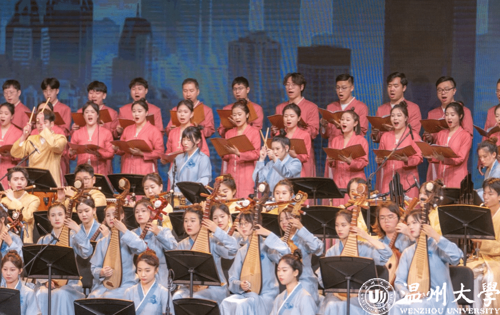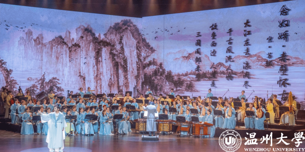 当晚的音乐会,分《宋韵锦绣》《初发芙蓉》《烟火人间》《赤壁怀古》《精忠铁骨》《瓷色》《听琴》《宋韵瓯风》八个乐章,超过200余位演出人员通过吟诵、器乐、合唱、舞蹈等多元艺术形式,为观众呈现“千年宋韵 海丝寻音”的历史回响。从细腻宋画到豪放宋词,从雅致仕女到英武将士,从人间烟火到抚琴论道,一幅声色迤逦的宋韵画卷在眼前铺展开来……全曲以宋韵为方向,温州地方音乐为特色的创作理念,通过描写细腻宋画、豪放宋词、名将岳飞、精美宋瓷等一系列宋韵文化意象,表现了中华宋韵美学精神的独特韵味与雅俗共赏的瓯越文化重要内涵。当演出落幕,观众席上爆发出热烈而持久的掌声。