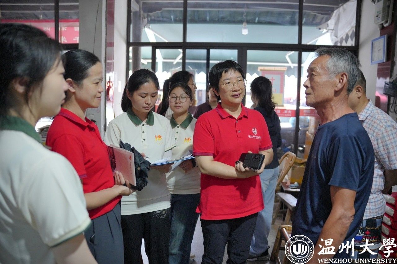 图为实践队在林岙村做问卷和访谈,了解泽雅红色文化传承现状