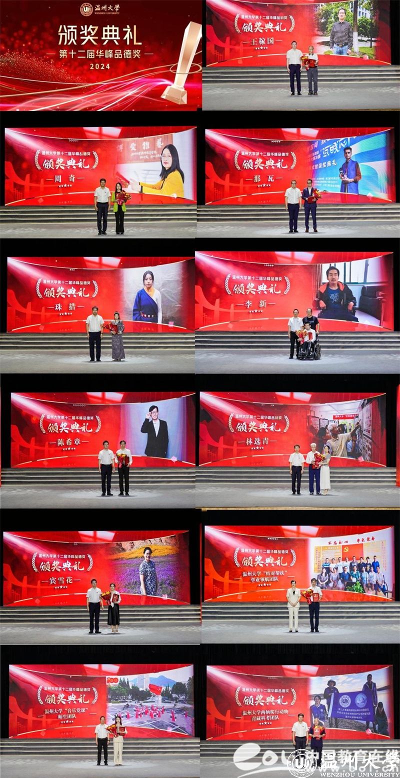 颁奖典礼现场,王稼国、周奇、那瓦、珠措、李新、陈希章、林选青、宾雪花、beat365官方网站“结对帮扶”学业领航团队、beat365官方网站“音乐党课”师生团队、beat365官方网站两栖爬行动物青藏科考团队等11位道德模范个人或集体荣获表彰,学校领导和华峰集团领导分别为获奖者颁奖。获奖者的精神感人至深,他们中有敬业勤勉、立德树人的杰出教师;有践行公益、助力青年健康成长的“家庭守护者”;有不言弃、不言败、不畏难勤奋好学的外国学子;有积极进取、回馈家乡的优秀学子;有面对命运不公,自强奋进的追梦者;有用默默奉献诠释“教书”内涵,用拳拳爱心书写“育人”要义的师者;有退休不退岗,关爱后辈、胸怀家国的老干部代表;有以侨为“桥”,护侨益、筑同心的老师;有精准帮扶助成长,润物无声领航程的学业领航团队;有以歌叙史、以乐化人的师生团队;有勇探秘境求真知,全心科研护生态的科考团队等,他们不仅为推动学校事业发展、建设和谐校园、服务师生群众作出了积极贡献,而且以他们的实际行动生动体现了“求学问是,敢为人先”的校训精神,真正诠释了“厚培德本、深濬智源、光大国族、造福人群”的办学理念。