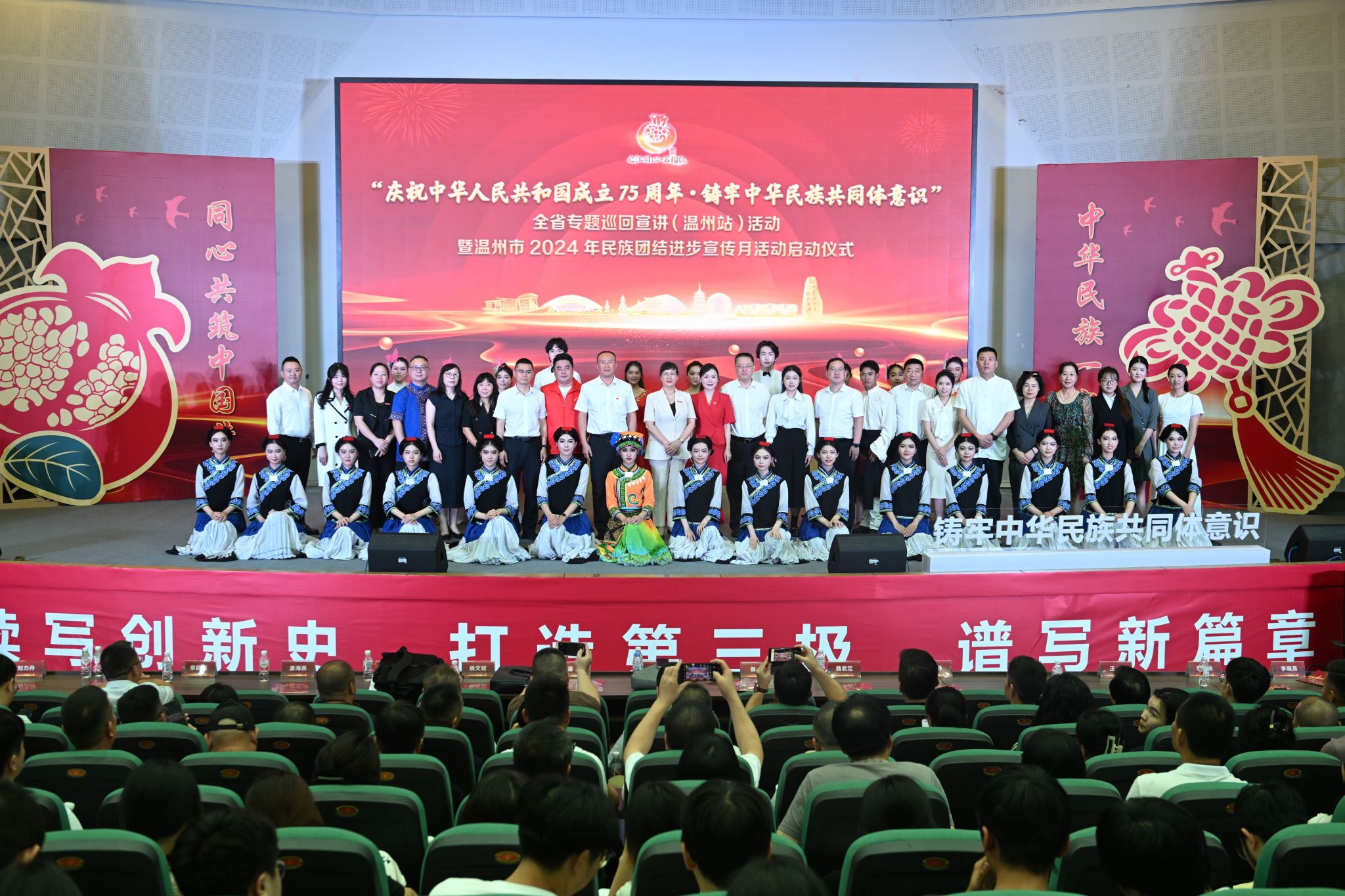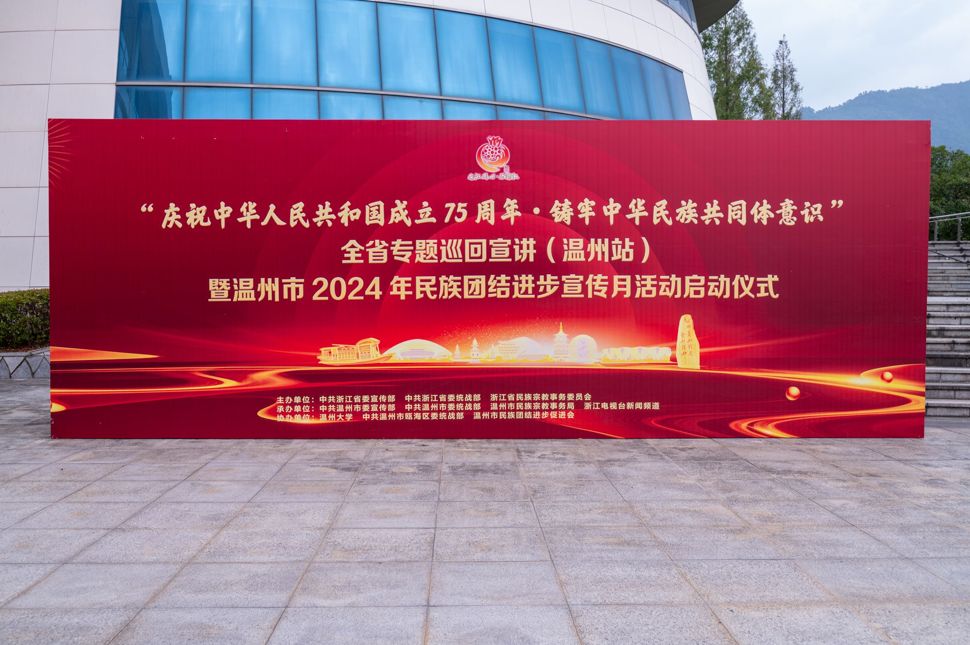 瓯越同心助强城,中华民族一家亲。近日,“庆祝中华人民共和国成立75周年·铸牢中华民族共同体意识”2024年度全省专题巡回宣讲活动(温州站)暨温州市2024年民族团结进步宣传月活动启动仪式在beat365官方网站举行。10万余人次线上观摩本次活动。