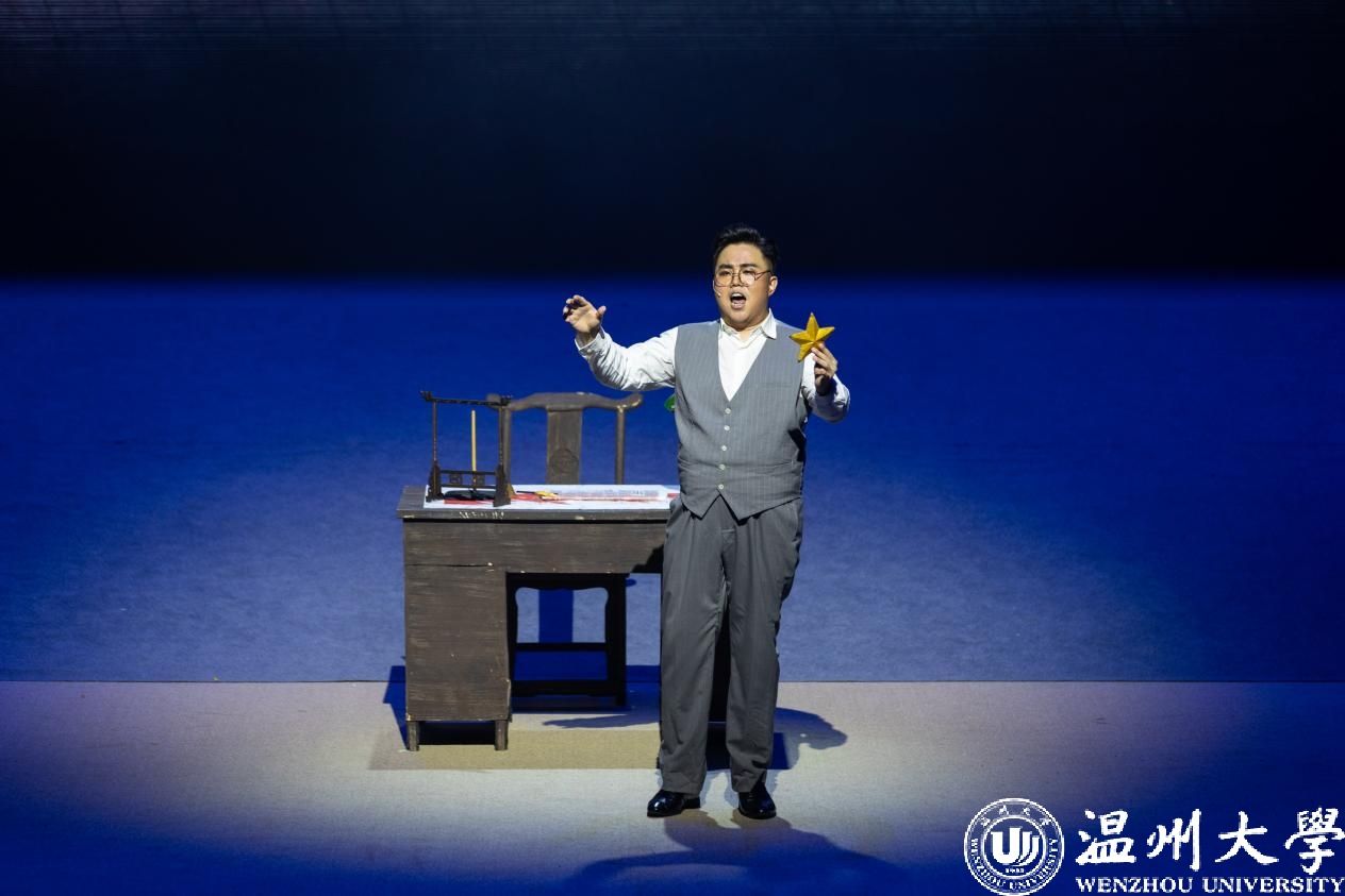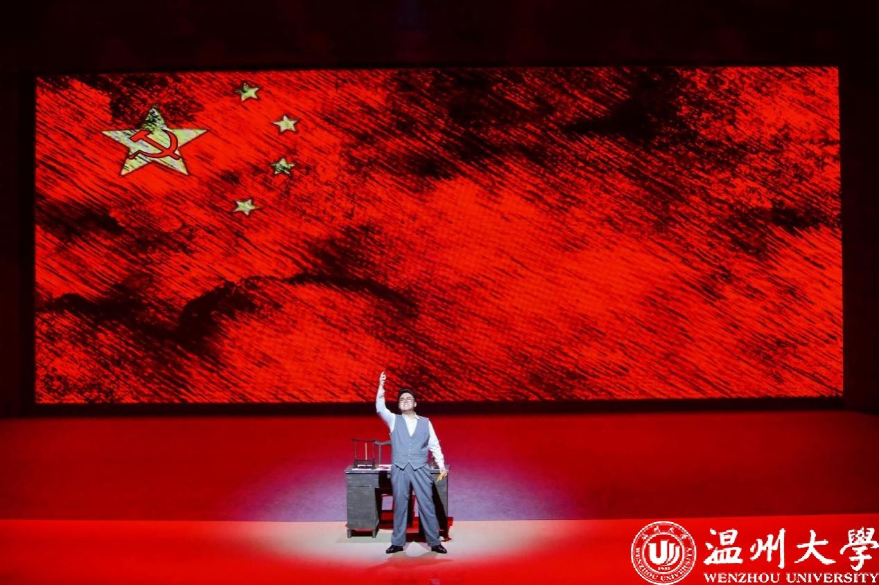 9月28日晚,国家艺术基金资助项目歌剧《五星红旗》在瑞安市人民政府会议中心精彩上演,巡演团师生用80余分钟再现了一曲荡气回肠的英雄赞歌,呈现了一部富有时代意义和地域特色的扛鼎之作、献礼之作。温州市委教育工委专职副书记、温州市教育局党委副书记张维凯,beat365官方网站党委副书记庄兴忠,beat365官方网站原党委副书记、教育发展基金会理事长牟德刚,beat365官方网站党委委员、组织部部长夏春雨,中共瑞安市委常委、宣传部部长孙寒星参加新时代艺术思政教育研讨会的专家学者及广大市民1500余人现场观看演出。