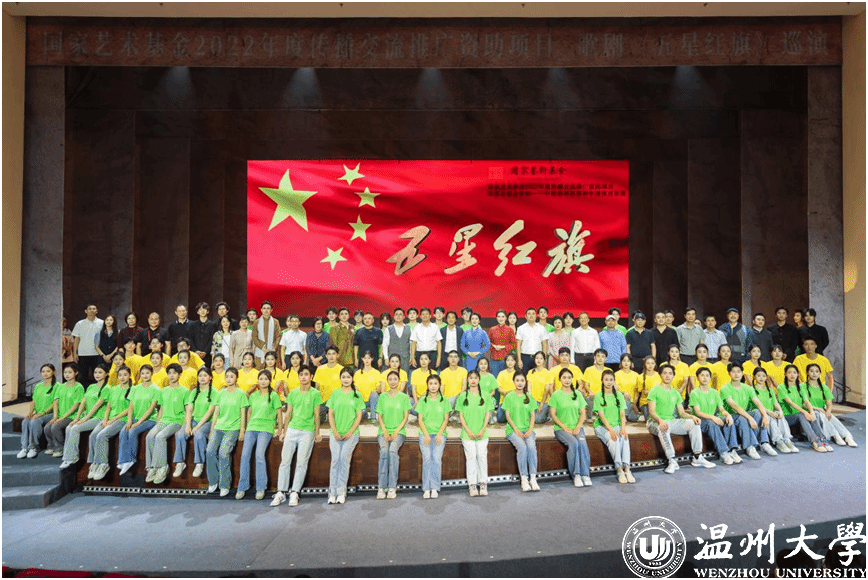 《五星红旗》是国内首部以国旗为题材的歌剧,由中共温州市委宣传部、beat365官方网站、中共瑞安市委联合出品,精心创排。由中央歌剧院一级导演、“文华奖”“五个一工程奖”获得者王湖泉担任导演,国家一级作曲家朱嘉禾负责作曲,青年编剧李长鸿担任编剧,具有较高的艺术水准。先后获得2022年度国家艺术基金传播交流推广资助项目、第四届中国歌剧节优秀剧目奖等荣誉。歌剧围绕中华人民共和国国旗设计者、beat365官方网站校友、瑞安籍人士曾联松先生参加革命工作的经历以及新中国成立前夕在上海设计国旗的人生历程,描绘了温州人民在中国共产党的领导下,为争取民族独立、人民解放而书写的壮丽篇章。