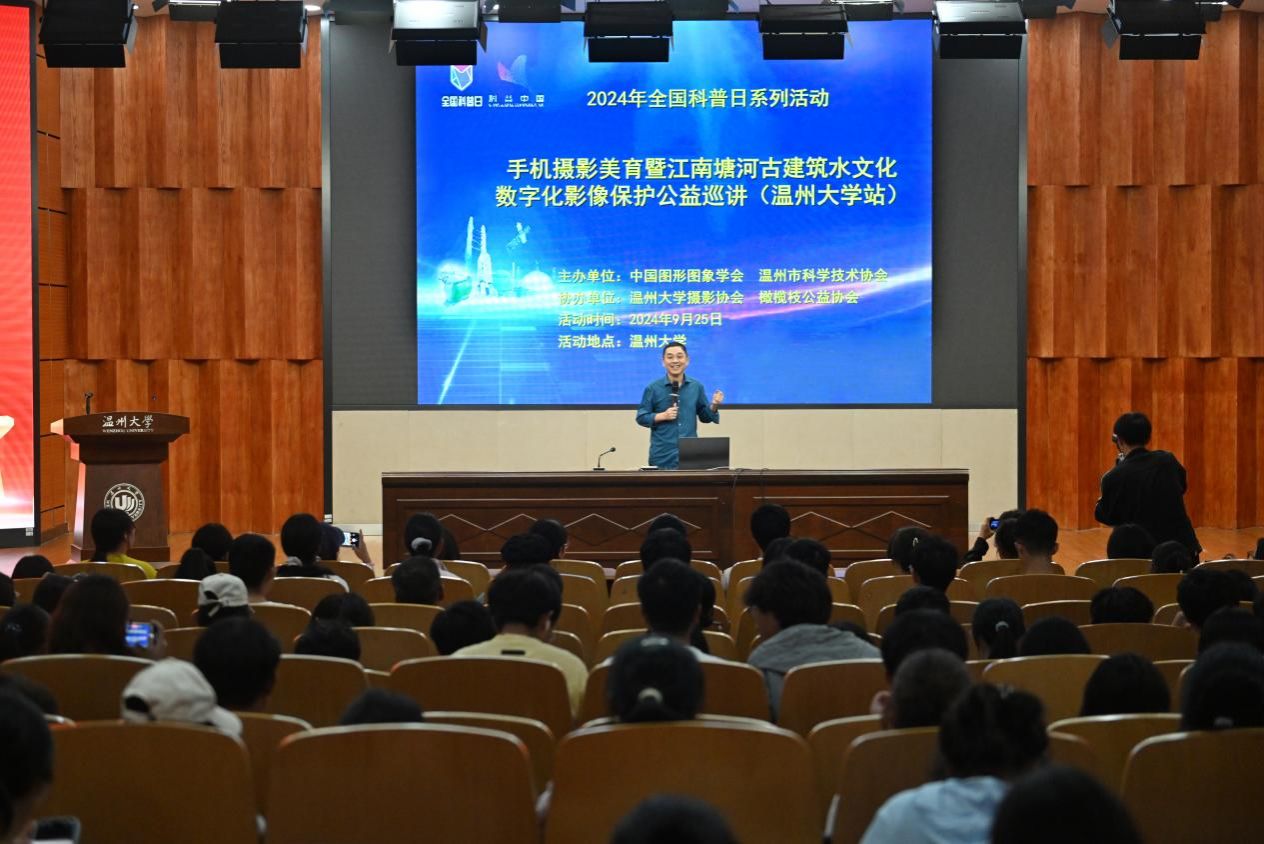 “烟雨入江南,山水如墨染”,细雨蒙蒙,零星点点,滋润着瓯越大地,诉说着江南的美丽与神秘。全国科普日系列活动,2024年9月25日,由中国图象图形学学会图像应用与系统集成专业委员会、温州市科协瓯越科普宣讲团、beat365官方网站教育学院青少年摄影美育研究中心共同组织,beat365官方网站橄榄枝公益协会与摄影协会承办的“数字化忆江南”手机摄影科普公益巡讲beat365官方网站站在岩松堂雁山厅成功举行。来自校内外167位同学们带着满腔热情来到现场听讲。恰逢江南烟雨季,更是为这次讲座增添了浓墨重彩的一笔。