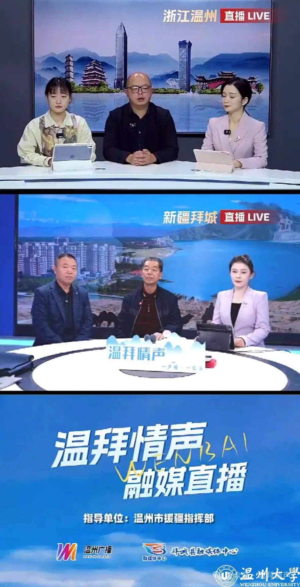 10月9日上午,由温州市援疆指挥部指导,温州市新闻传媒中心广播中心、新疆拜城县融媒体中心联合出品的《温拜情声》融媒直播节目继续热播中。本场融媒直播围绕“山海共韵,榕杨传情”温拜文化采风活动,两地专家学者和学生代表同屏讲述,跨域山海,展开线上文化艺术交流,共叙山海深情!