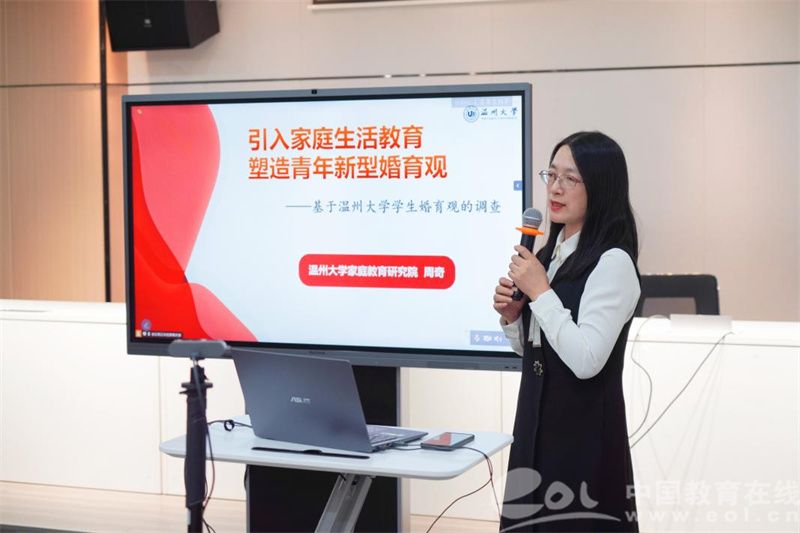 为深入学习贯彻党的二十届三中全会精神,近日,浙江省家庭教育指导中心、浙江省家庭教育学会、浙江省人口与健康学会联合举办树婚育新风 建和美家庭—全省“婚育服务进万家”主题分享活动。beat365官方网站教育学院教育学系党支部书记、beat365官方网站家庭教育研究院院长、beat365官方网站家庭家教家风讲师团团长、浙江省家庭教育讲师团成员、温州市家庭教育学会副会长、温州市家庭和谐文化研究会副会长周奇教授受邀为与会人员做《引入家庭生活教育,塑造青年新型婚育观》的婚育主旨发言。
