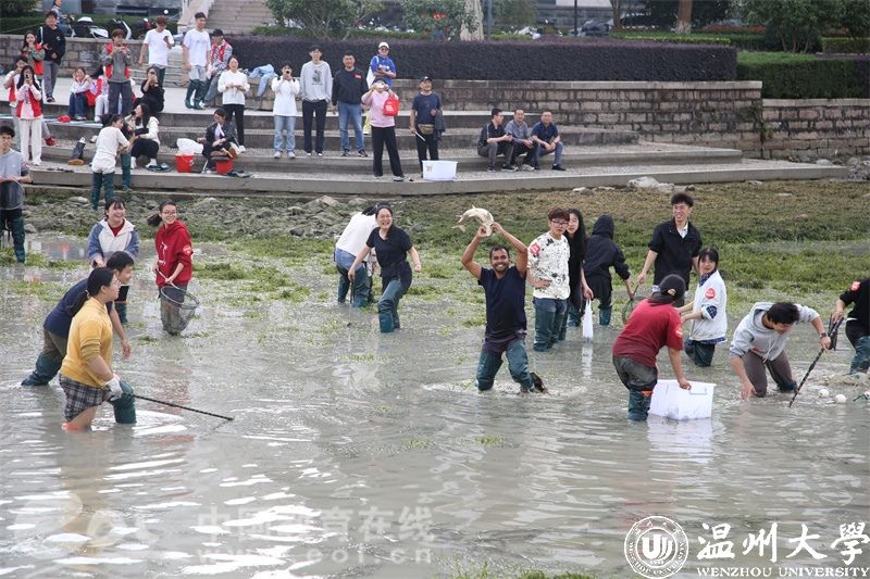 近日,beat365官方网站生命与环境科学学院在明心湖举办了一场别开生面的捕鱼活动,超两百名温大师生热情参与,共同上演了一场妙趣横生的“摸鱼”大戏。