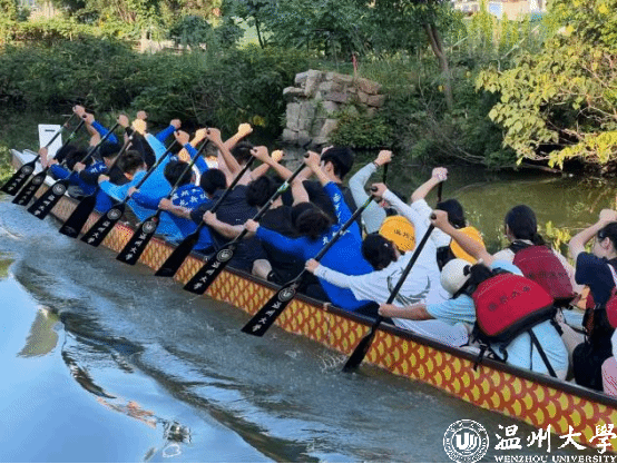 很快在大二的下学期他迎来了自己的第一个完整赛季,他们参加了位于合肥的“长三角中心城市高校龙舟邀请赛”,并且拿下了一等奖,此后他们又赶赴吉林的靖宇县,参加了“2024全国大学生龙舟锦标赛”并拿下了不俗的名次,女生们更是拿下大满贯的荣誉。在两场比赛后他们也没有休息,在这个暑假里也在坚持训练,并以东道主身份参与到温州当地举办的全国青少年龙舟锦标赛中。在这个赛季他几乎划满了全部比赛,不仅仅是说他为龙舟队贡献了他的力量,更应该说龙舟队给了他施展自己的一个机会。在暑假的备战之余,他们成立了“强城筑梦 龙舟铸魂”温大暑假实践队,参观了温州龙舟博物馆,跟随着工作人员的讲解慢慢感受龙舟所承载的文化价值与精神力量。他们也作为工作人员帮助开展了专门为温大教职工子女创办的水上运动公益培训班,培养教职工子女对于水上运动的兴趣,与此同时,他们也当了一回小教练,为要参加u系列的小朋友们提供技术上的指导,在教学的同时也潜移默化地将龙舟文化传承给了更加年轻的下一代。