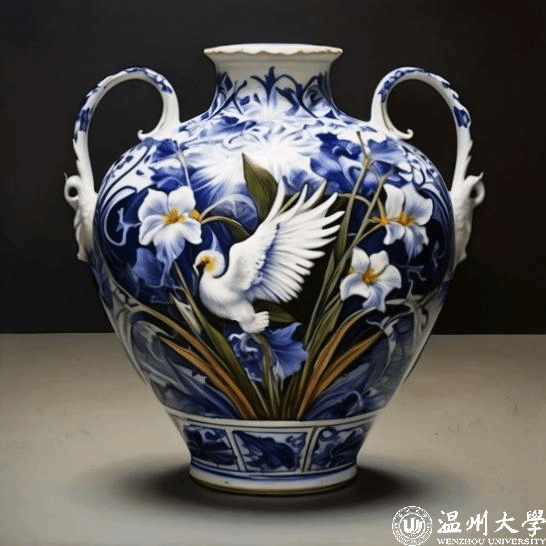 后来,通过学院开设的视觉媒介与信息素养的课程,他更加深入的了解到了视觉媒介领域的知识,并且在课程中,体验了当时的多个ai绘图工具,他仍然记得当时他制作的第一个“可以商业化”的作品:一个中西结合的陶瓷罐。它可以说是他人生中的第一个ai设计作品。虽然在现在的眼光看它,它可能不是一个很生动的罐子,但是在当时的他看来,它让周洲一个不懂得设计、不懂得陶瓷罐的人,在极短的时间内制作出一个视觉上很有冲击力的物品,是一件非常“降维打击的事情”。也是在这堂课的学习中,让他第一次直观的感受得到ai对于行业创作的质量和效率的提升。