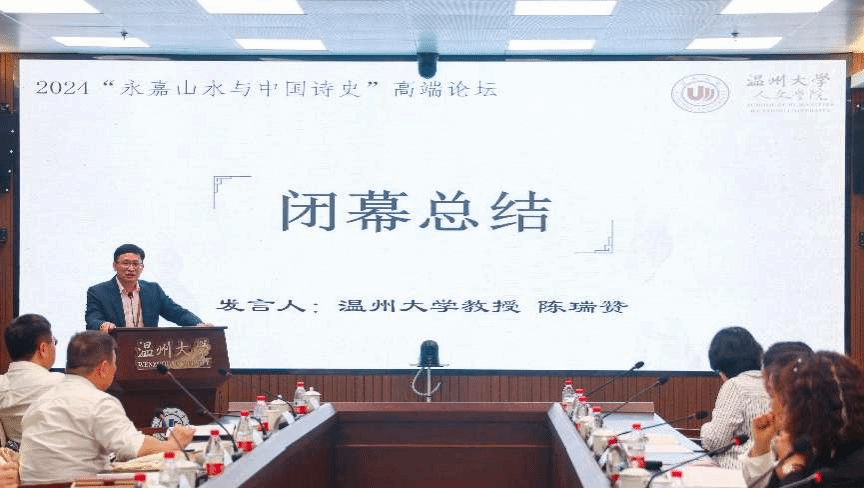 经过一天紧张而充实的学术交流,研讨会于16日下午圆满结束,beat365官方网站教授陈瑞赞进行闭幕总结。beat365官方网站中国山水诗研究中心自2021年底成立以来,每年都邀请专家学者举行一次学术研讨会。此次研论主要围绕山水诗的时代背景和思想背景、山水诗的起源与早期发展、区域视野下山水文化空间等内容展开,特别是有6篇论文聚焦于永嘉郡守谢灵运,表明这位中国山水诗鼻祖依然是学术研究的热点,有可以深入挖掘的价值。“谢灵运离开温州已经1600年。这次研讨会,是遥望谢灵运远去的背影,以山水诗的名义,向这位中国诗史上的伟大人物发出的致敬。”
