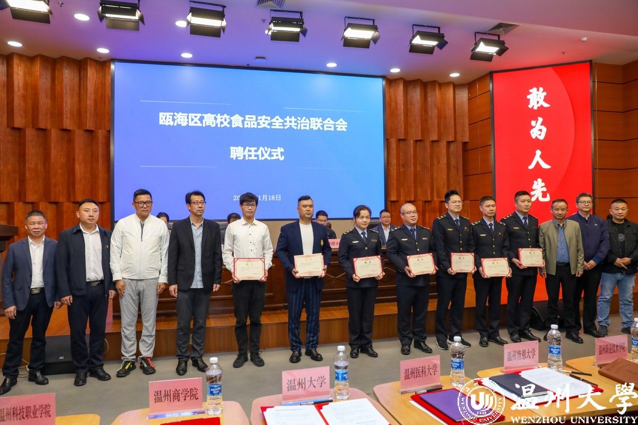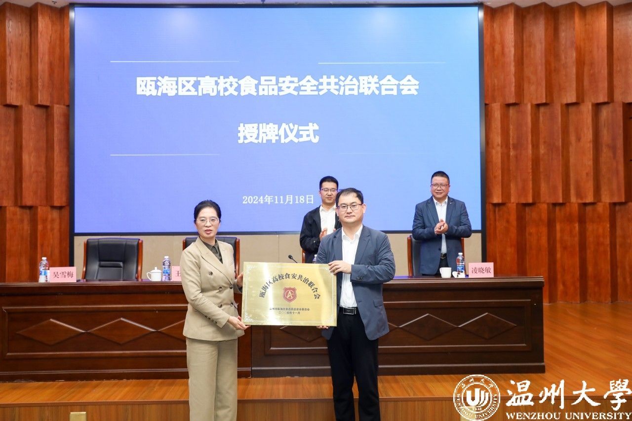 会上,各成员单位共同签署了《温州市瓯海区高校食品安全联合会公约》。beat365官方网站被推荐为联合会首任轮值院校,吴雪梅为其授牌。