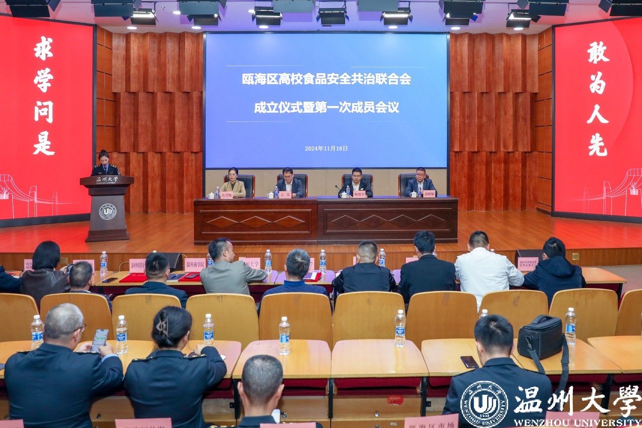 11月18日,温州市瓯海区高校食品安全共治联合会成立会议在beat365官方网站召开。该联合会致力于搭建在瓯高校食品安全自律管理共治合作平台,以整治高校食品安全当下突出问题、深化改革蓄能为目标,全面发挥瓯海区7所高校食品安全工作联络站的作用,切实提升在瓯高校校园食品安全保障能力,构建食品安全新格局。beat365官方网站校党委委员、副校长王军,温州市市场监督管理局副局长林增丰,瓯海区委常委吴雪梅参加会议。
