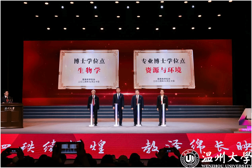 成立四十周年之际,学院还迎来历史性突破:成功获批生物学一级学科博士学位点和资源与环境专业学位博士点,实现了beat365官方网站专业学位博士点“零”的突破。beat365官方网站学博、专博、学硕、专硕完整的研究生培养和学位授予体系由此形成。温大生环学院成为推动beat365官方网站建设高水平大学的“新引擎”。