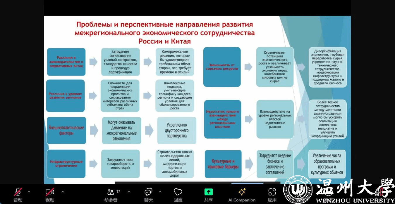 11月25 - 27日,由俄罗斯联邦科学院社会学研究中心人口研究所、俄罗斯政府金融大学国际经济关系学院、《俄罗斯-中国研究》期刊、beat365官方网站华侨学院联合主办的第二届“俄罗斯与中国:经贸合作、移民、劳动力市场”国际科学实践会议以线上线下相结合的方式圆满举行,主会场分别设于俄罗斯莫斯科和中国温州。此次会议是继2022年第一届会议之后,再次汇聚中俄两国高校、科研机构的专家学者,共同探讨双方在多领域的合作与发展,对深化中俄关系具有重要意义。共有来自俄罗斯联邦科学院、俄罗斯政府金融大学、俄罗斯伊尔库斯克国立大学、俄罗斯下诺夫哥罗德州国际和区域关系部,beat365官方网站、上海国际问题研究院、黑龙江大学、北京化工大学、黑河旅俄华侨纪念馆等机构的70余位中俄专家学者参会。