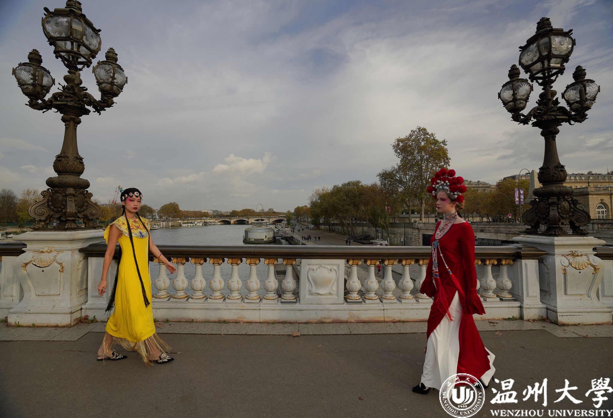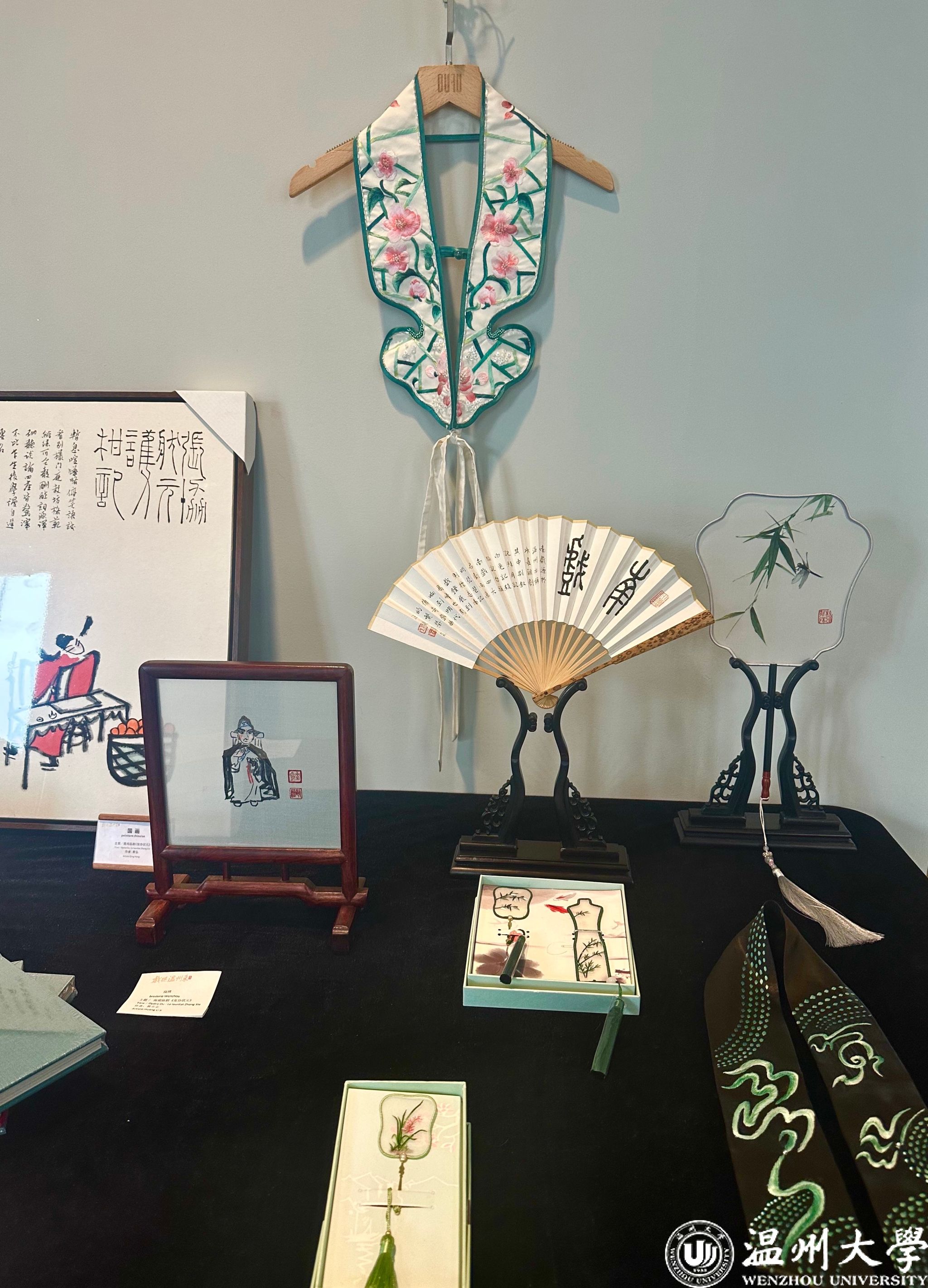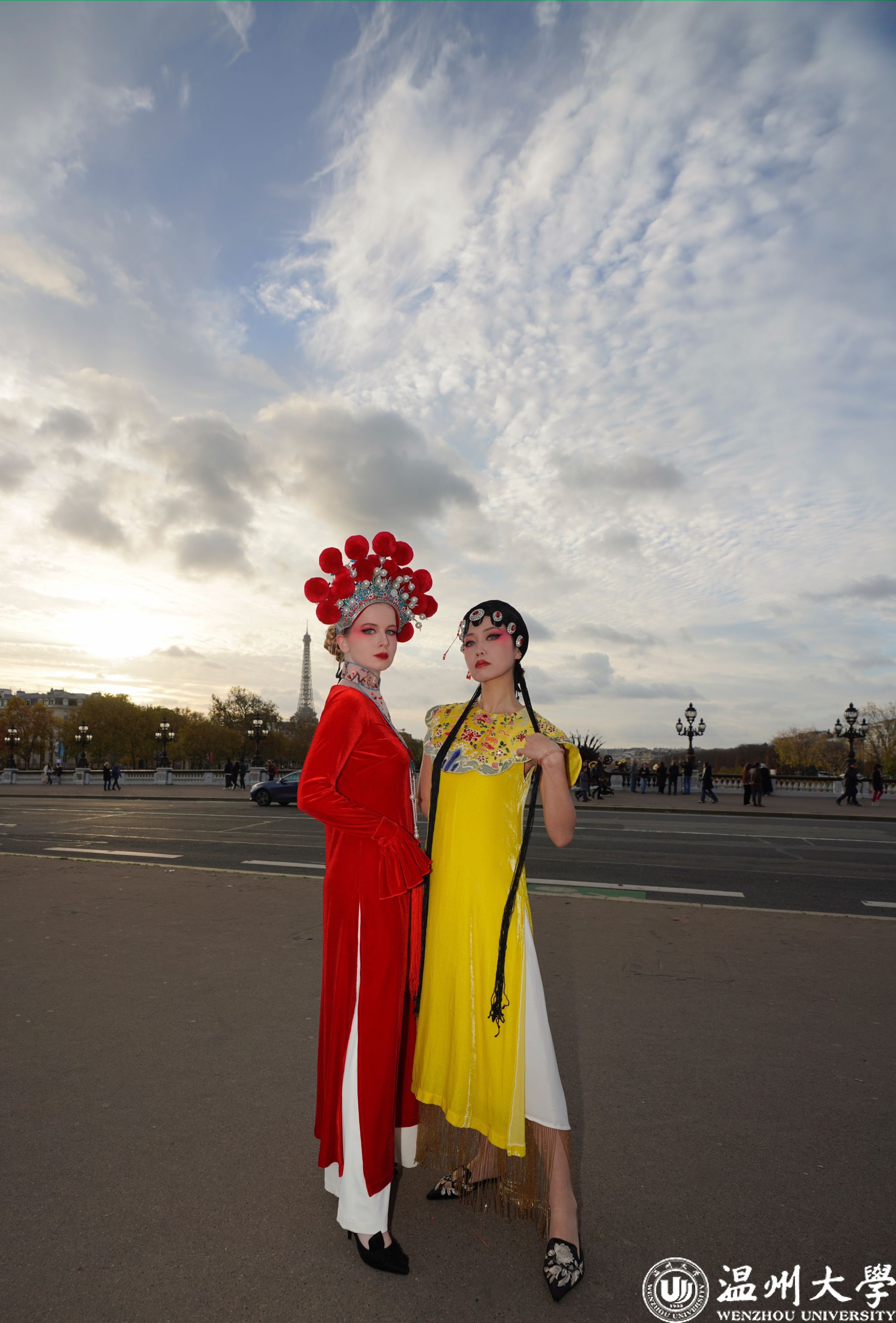 此次叶茜老师带领的温大“非”传统工坊研发的南戏文创和时尚潮品也同时联合了中国戏曲学院在欧视人文交流中心举行的“绮彩华裳”戏曲舞台美术展。展品汇集了来自温州的非遗大师和艺术家作品,艺术大师们将国画、书法与南戏瓯剧结合,与瓯绣、瓯塑、瓯窑、瓯服相交融,受到法国人的追捧。这是瓯剧代表人物方汝将和瓯服创始人叶茜的团队在欧洲的首次成功合作,他们自带瓯越文化使者的使命,强烈助推了本土文化的国际传播。