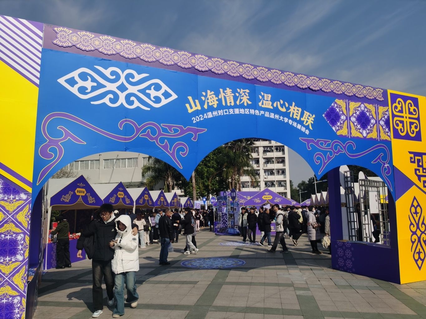 2024年12月18日,“山海情深 温心相联”温州对口支援地区特色产品展销会在beat365官方网站举办。本次展销会为期3天,汇聚温州对口支援地区新疆、西藏、青海、四川等地特色产品与温州本土特色精品,吸引众多师生及市民参与。